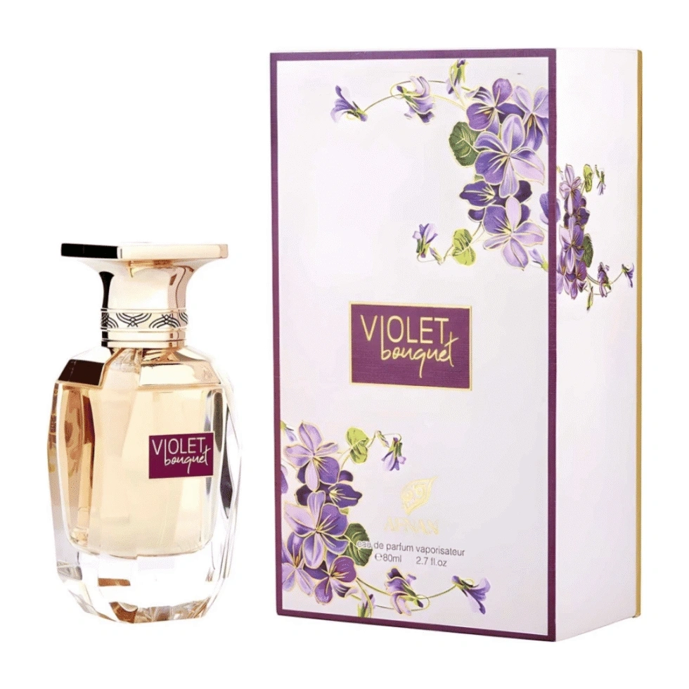Violet Bouquet Pour Femme captures the essence of elegance and femininity. Opening with a captivating blend of woody saffron and bergamot, it sets a sophisticated tone. As it unfolds, notes of caramel, amber, orange, and citrus peel add warmth and sweetness, evoking a sense of indulgence. The fragrance settles into a base of ambergris, oak moss, and ancient woods, leaving a lasting impression of timeless allure and refinement. Embrace the beauty of Violet Bouquet.
