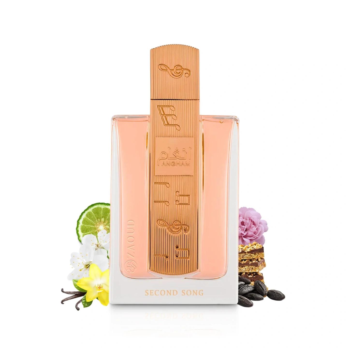 Angham Second Song unfolds as a sweet floral harmony, opening bright, smooth, and irresistibly addictive. Sparkling bergamot and juicy pear shimmer, wrapped in a soft glow of delicate floral blossoms.