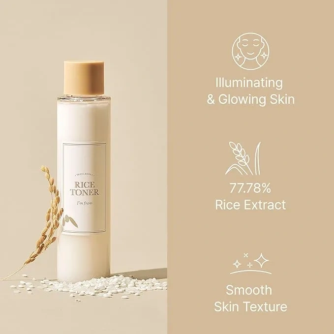 The I'm From Rice Toner is a highly-regarded hydrating and glow-enhancing skincare product, praised for its gentle, lightweight texture and effectiveness in providing moisture and smoothing skin texture. While many users with dry and sensitive skin report positive experiences with improved hydration, a softer complexion, and a healthy glow, some users have noted mixed results, including skin irritation or lack of significant change. Its key ingredients include 77.78% rice extract and niacinamide, which contribute to its skin-nourishing and texture-improving properties.