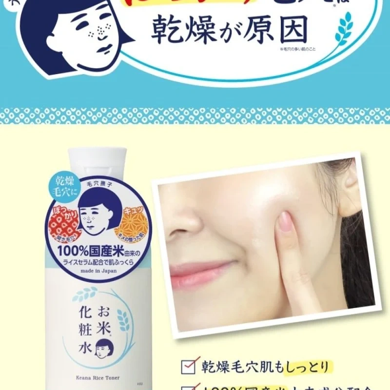 ISHIZAWA Keana Nadeshiko Rice Toner is a moisturizing and pore-minimizing rice toner, ideal for dry skin with noticeable pores. It contains 100% Japanese rice-derived ingredients including sake, rice bran oil, rice ceramides, and rice bran extract. This toner deeply moisturizes, nourishes, smooths and improves skin elasticity. Skin is left soft and firm, and pore appearance is greatly minimized.