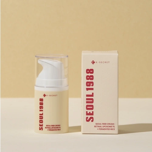 K-SECRET SEOUL 1988 Cream contains 1% Retinal Liposome and Fermented Rice Extract, designed to reduce signs of aging, improve skin texture, brighten dull skin, and provide deep hydration.