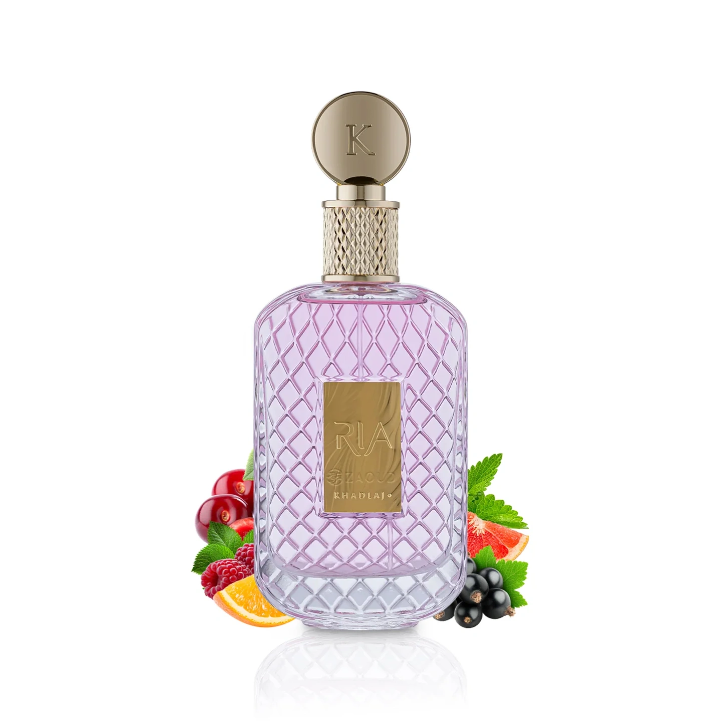 KHADLAJ RIA EDP is a highly praised, feminine-leaning fruity-musky fragrance (released late 2025) featuring prominent notes of cherry, strawberry, raspberry, and black currant, often compared to Dior's Rouge Trafalgar or Burberry Her. It is described as a "flirty fruit bomb" with a clean, slightly woody musk base, offering good longevity (6–8+ hours) and a polished, uplifting, and sweet scent profile.