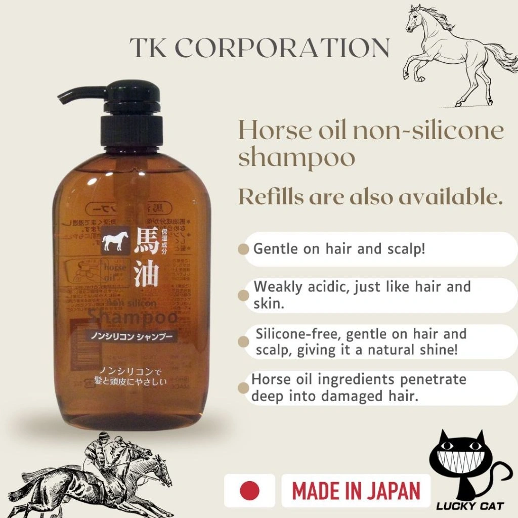 Kumano Yushi Horse Oil Shampoo contains natural oil from horse which has the closest composition to human sebum.