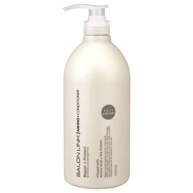 The Salon Link Amino+ Conditioner is a professional-grade hair treatment from the Japanese brand Kumano Yushi, specifically formulated to repair and protect severely broken or damaged hair. It features a potent blend of 16 types of amino acids and silk proteins that penetrate deep into the hair shaft to restore strength, body, and shine. Designed to combat the daily damage caused by environmental factors and chemical treatments, this conditioner balances moisture to transform dry, brittle strands into a healthy, silky texture.