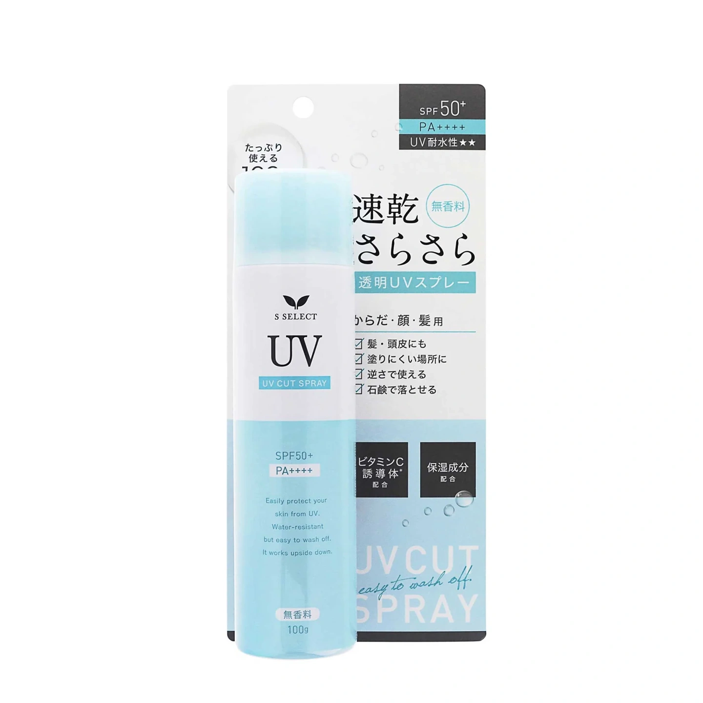 S SELECT UV protection spray sunscreen is also Japanese product. The spray is designed to block strong ultraviolet rays and has waterproof effect for long lasting protection. It has refreshing, absorbed texture that leaves no white cast on the skin after spraying. It can be applied both your skin and hair.