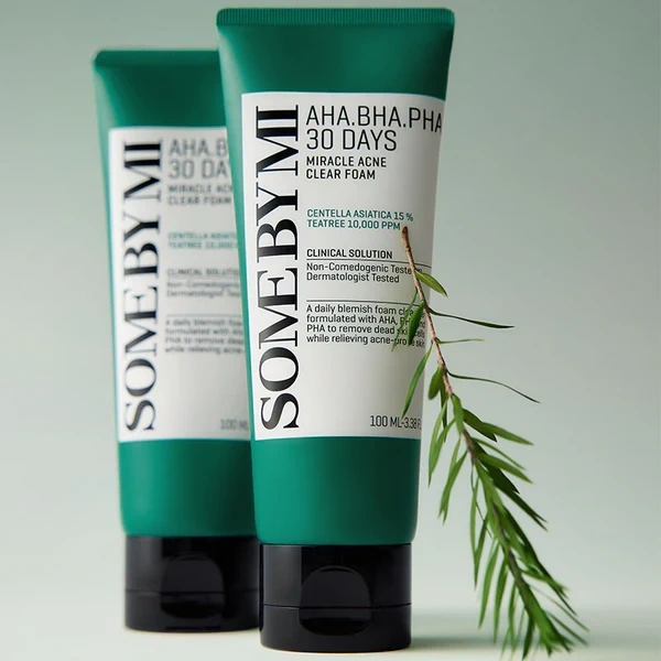 SOME BY MI AHA BHA PHA 30 Days Miracle Acne Clear Foam gently cleanses away sebum, dirt and impurities from pores through exfoliating ingredients AHA, BHA and PHA. It works together with SOME BY MI's patented Truecica ingredient comprised of a perfect ratio of mugwort, tea tree, Centella Asiatica extracts to balance out sebum levels while calming and soothing irritated skin from acne, blemish and pimples.