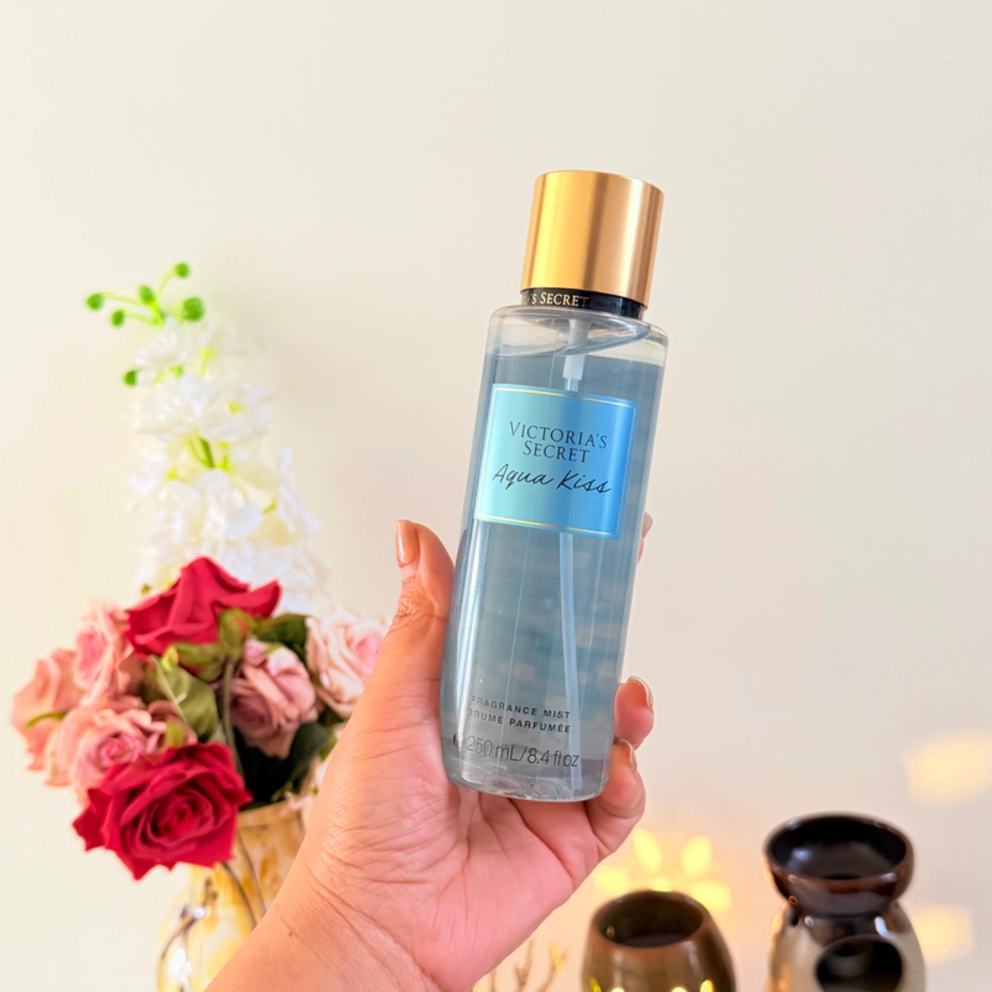 Refresh with Victoria's Secret Aqua Kiss Body Mist, a blend of ocean mist and florals for an all-day tropical essence.