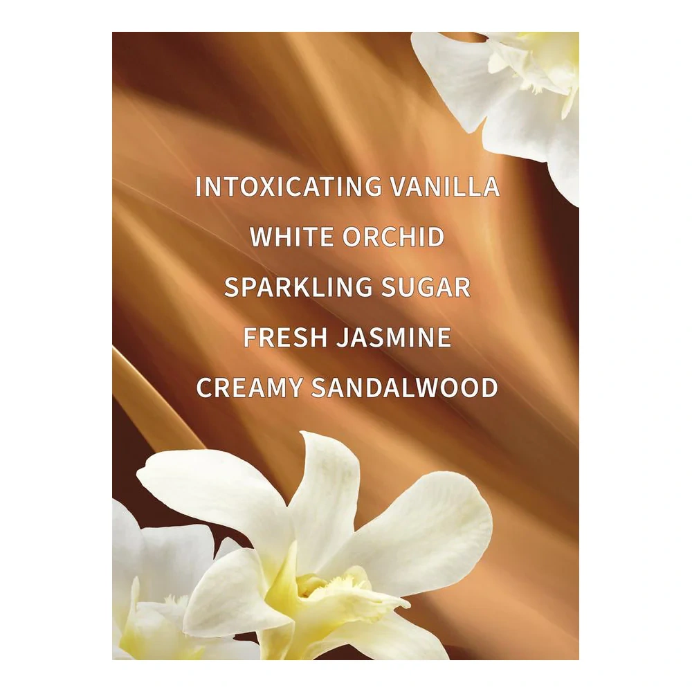 Fragrance notes: intoxicating vanilla, white orchid, sparkling sugar, fresh jasmine and creamy sandalwood.